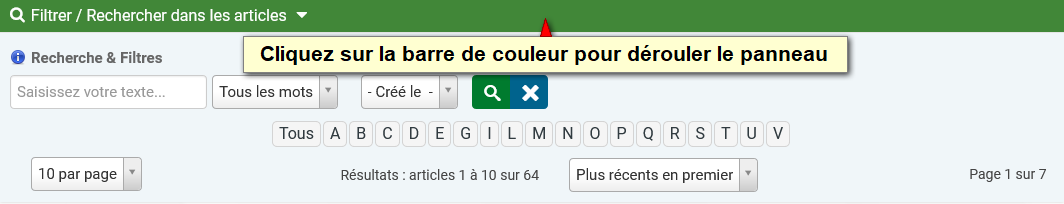 Utilisez le panneau déroulant disponible dans la rubrique Blog, Bases et Netsources pour rechercher un élément précis dans les articles.
