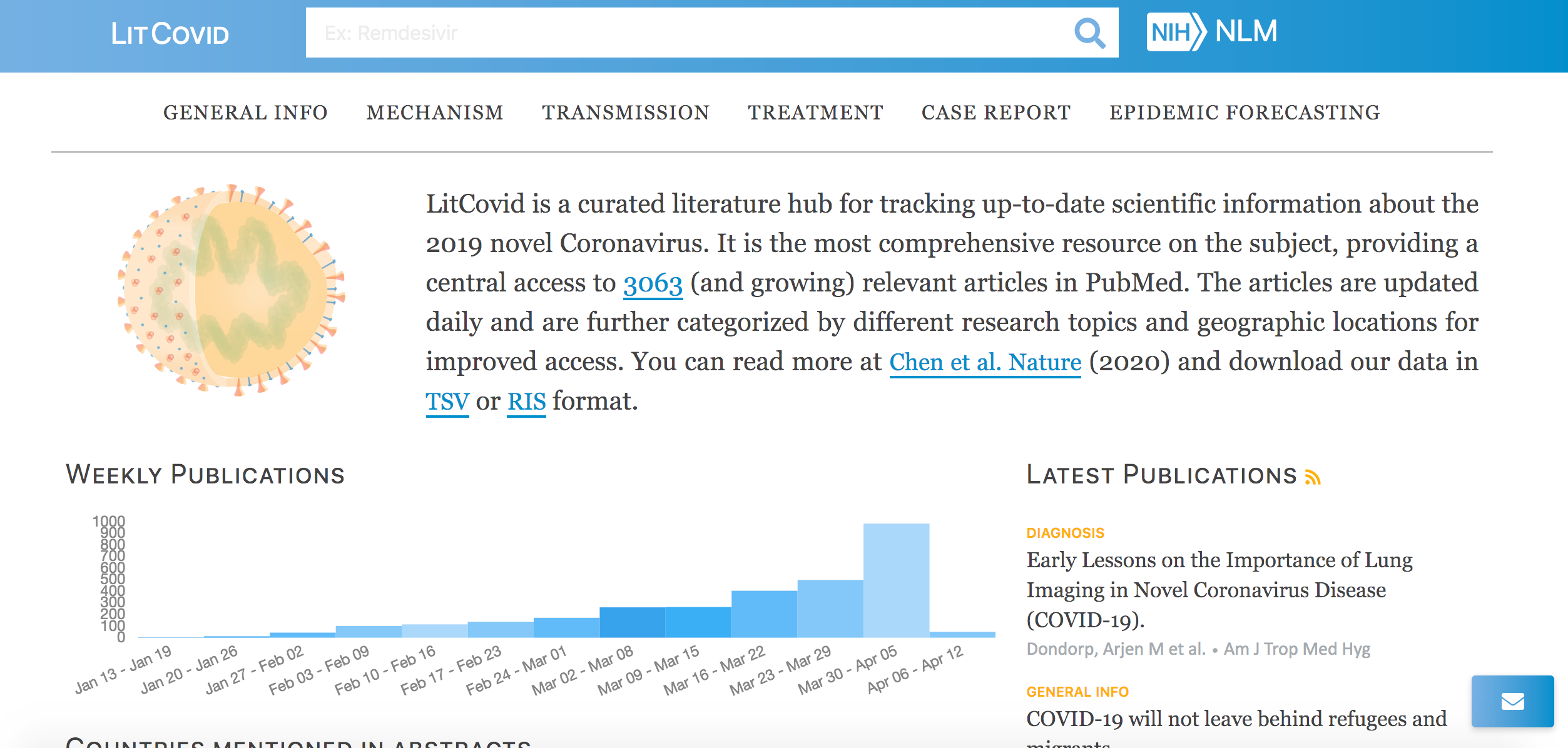 - LitCovid : portail mis en place par la National Library of Medicine qui regroupe les articles de Pubmed sur le sujet (voir figure 2.) : https://www.ncbi.nlm.nih.gov/research/coronavirus/ ;
